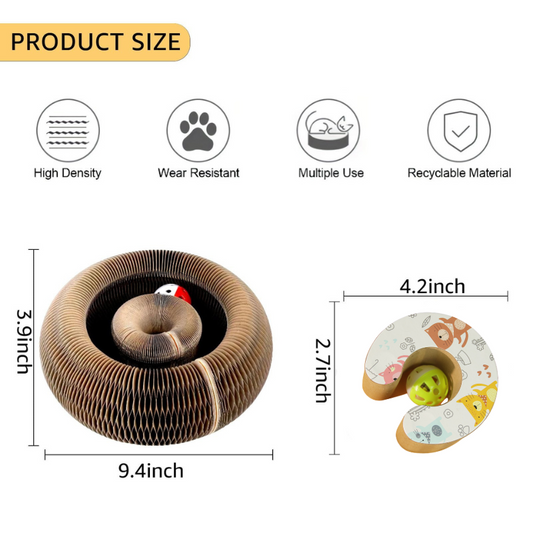 😸Cat Toy, Magic Organ Cat Scratch Board, Compact Cats Accordion Toy, Interactive Cardboard Cat Scratcher Pad Toys with Bell Ball for Indoor Exercise