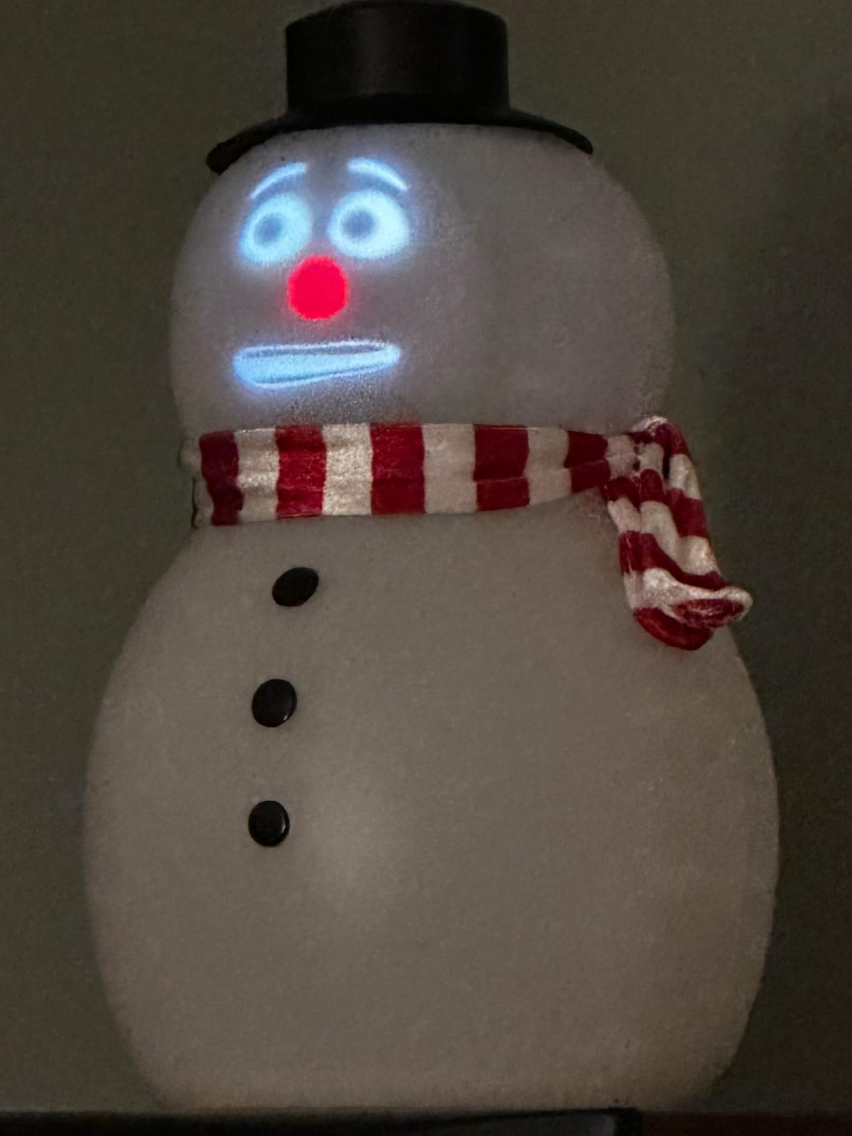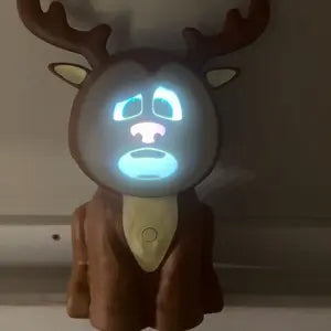 It plays Christmas songs, sayings, or holiday jokes through its built-in speaker.