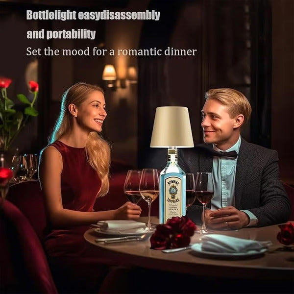 The lamp features a versatile conical lampshade design that can adapt to various bottle types—beer bottles, wine bottles, whiskey bottles etc.